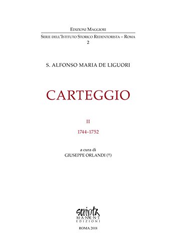 Dei cinque periodi in cui si può suddividere la vita adulta di s. Alfonso, il secondo copre gli anni che corrono dal 1744 al 1752, ed è caratterizzato dall'attività da lui svolta come "legislatore", impegnato nella stesura delle regole e delle costituzioni, dalla ricerca delle approvazioni pontificia e regia dell'Istituto (la prima concessa nel 1749; la seconda, solo parziale, nel 1752). In questo periodo, il Santo assume gradualmente un ruolo sempre più incisivo nella vita di quella che continua a chiamarsi Congregazione del SS. Salvatore (la denominazione di Congregazione del SS. Redentore venne adottata solo nel 1749). Infatti egli diventa protagonista assoluto delle vicende dell'Istituto negli anni che costituiscono l'ambito di questo secondo volume del Carteggio.